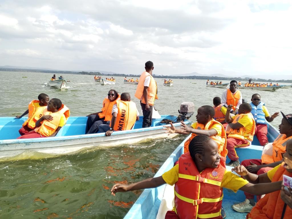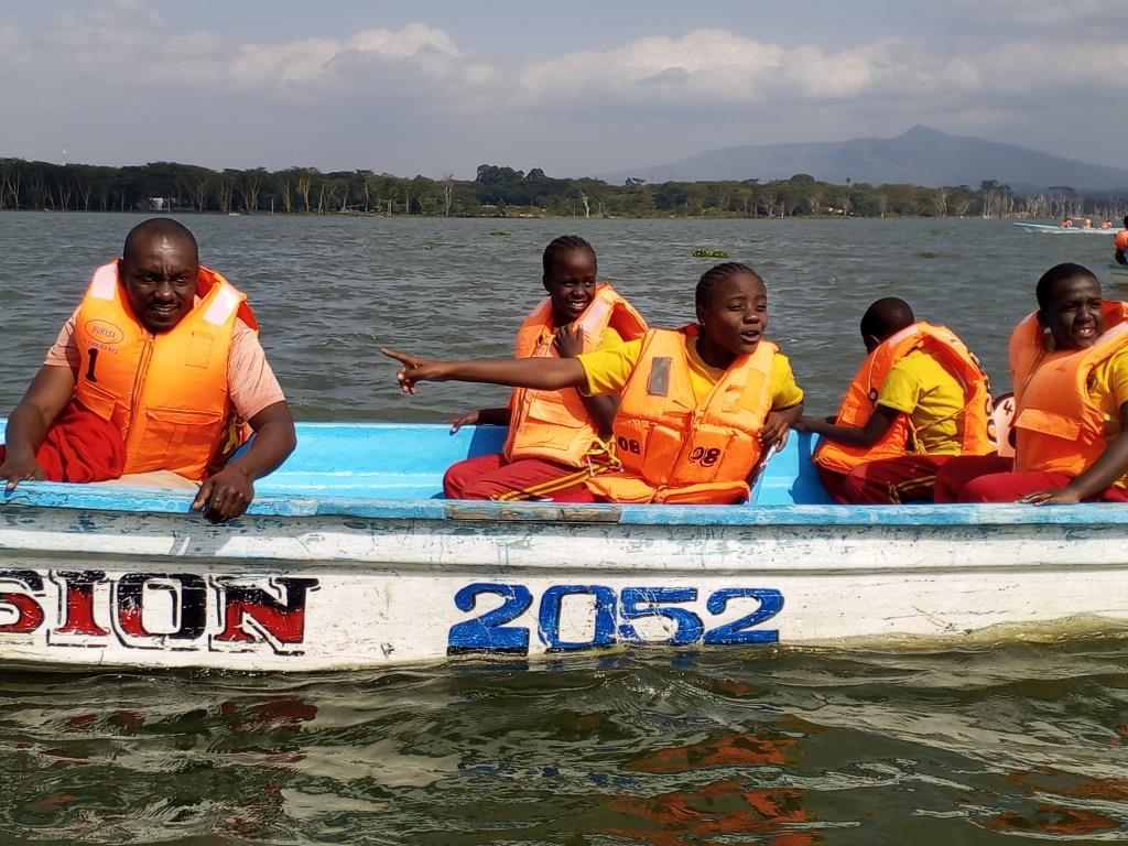 Grade 5 learners enjoying the boat ride in Lake Naivasha